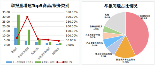 市場(chǎng)監(jiān)管部門堅(jiān)持民生導(dǎo)向,強(qiáng)化對(duì)投訴舉報(bào)問(wèn)題的分析研判,依法嚴(yán)厲查處違法違規(guī)行為。針對(duì)廣告違法、虛假宣傳等舉報(bào)立案28.11萬(wàn)件;針對(duì)侵害消費(fèi)者權(quán)益行為舉報(bào)立案6.3萬(wàn)件,主要涉及銷售不符合安全要求產(chǎn)品、假冒偽劣、欺詐消費(fèi)者等;針對(duì)食品安全違法舉報(bào)立案4.87萬(wàn)件。