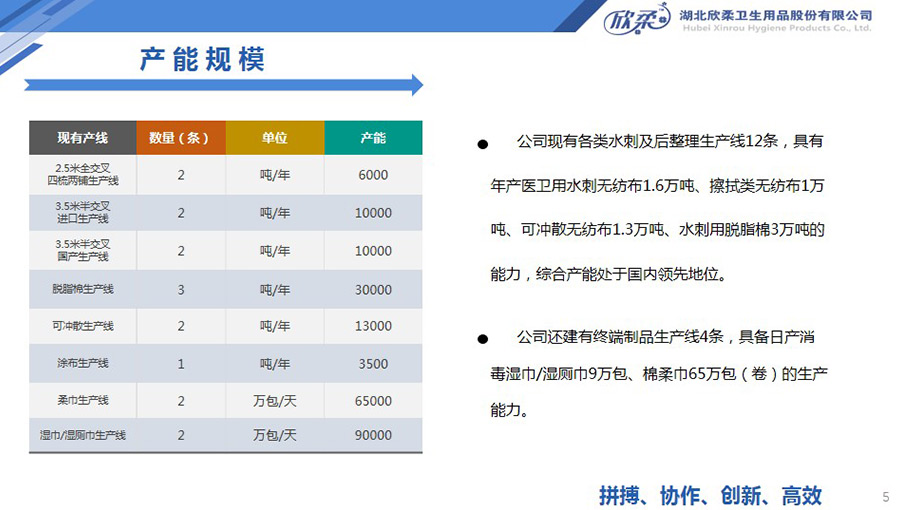 欣柔還建有終端制品生產(chǎn)線4條,具備日產(chǎn)消毒濕巾/濕廁巾9萬(wàn)包、棉柔巾65萬(wàn)包(卷)的生產(chǎn)能力。