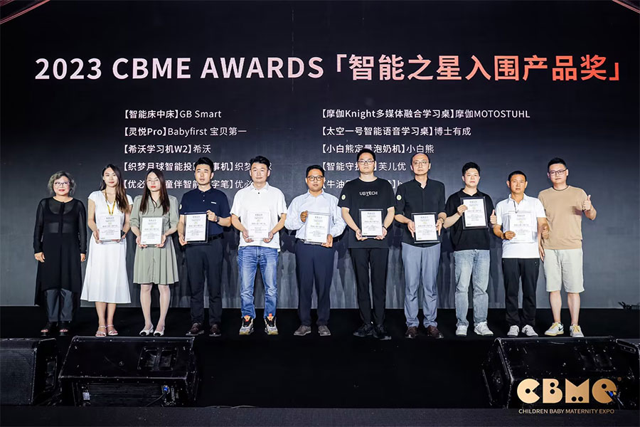 2023年 bebetour品牌在第22屆CBME孕嬰童展,分別獲得“愛麗絲紙尿褲”顏值包裝之星、“牛油果智能搖椅”智能之星的獎項。