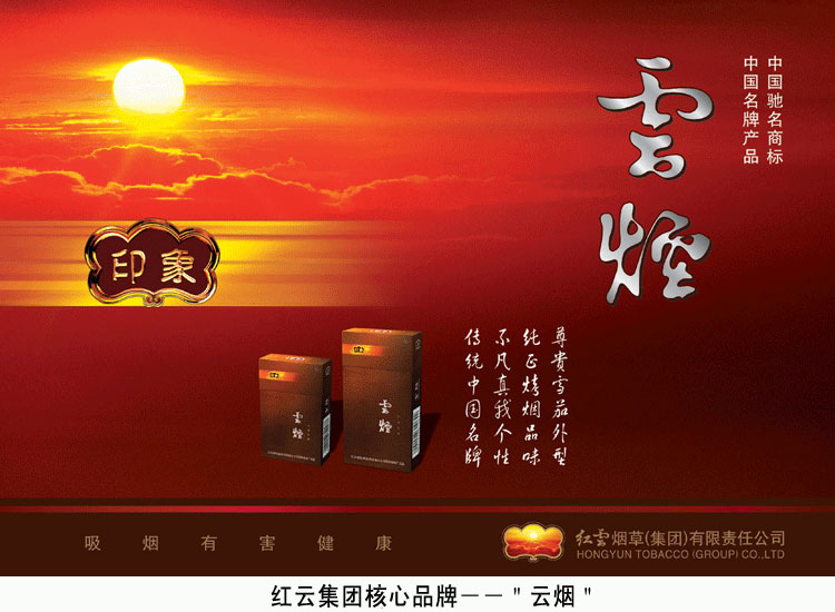 集團(tuán)主要產(chǎn)品有“云煙”、“小熊貓”、“紅山茶”、“石林”、“香格里拉”、“福”等十多個(gè)品牌,其中10個(gè)品牌入選“中國(guó)卷煙百牌號(hào)”名錄。核心品牌“云煙”榮獲“中國(guó)馳名商標(biāo)”和“中國(guó)名牌產(chǎn)品”稱號(hào),連續(xù)8年(1998-2005)榮列“全國(guó)市場(chǎng)同類產(chǎn)品十大暢銷品牌及最具競(jìng)爭(zhēng)力品牌”。目前,集團(tuán)正致力于將“云煙”品牌培育成為單品牌年創(chuàng)稅利超百億元的強(qiáng)勢(shì)品牌,將“紅山茶”品牌培育成為年產(chǎn)銷規(guī)模過百萬箱的優(yōu)勢(shì)大品牌。