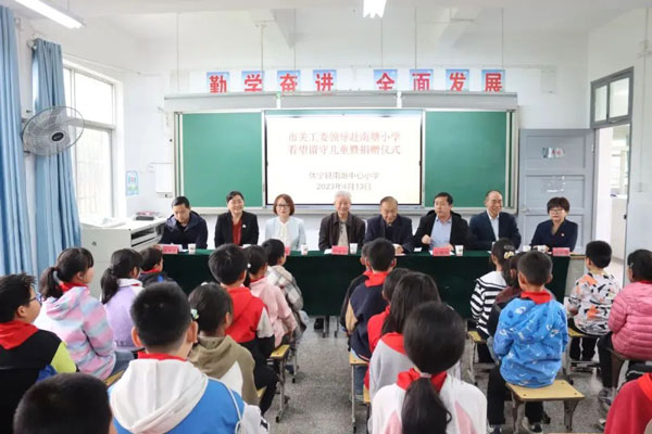 為積極響應(yīng)市關(guān)工委關(guān)心下一代工作的號(hào)召,4月13日下午,安徽永峰制衣有限公司總經(jīng)理葉建萍參加了由市關(guān)工委牽頭組織黃山日?qǐng)?bào)社、市婦聯(lián)、休寧縣關(guān)工委等多個(gè)部門參加的看望休寧縣南塘小學(xué)留守兒童和捐贈(zèng)校服活動(dòng)。