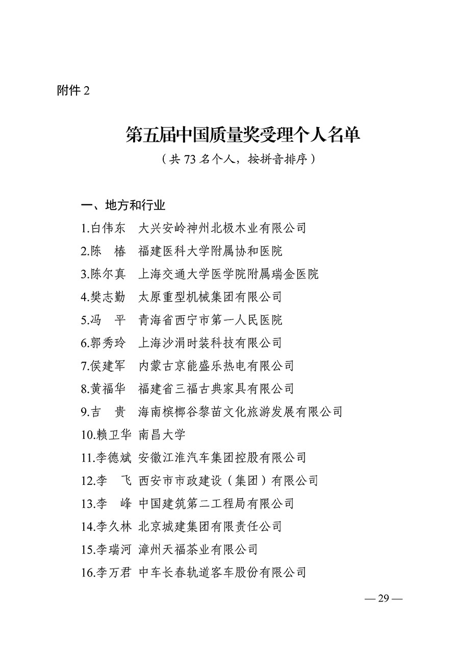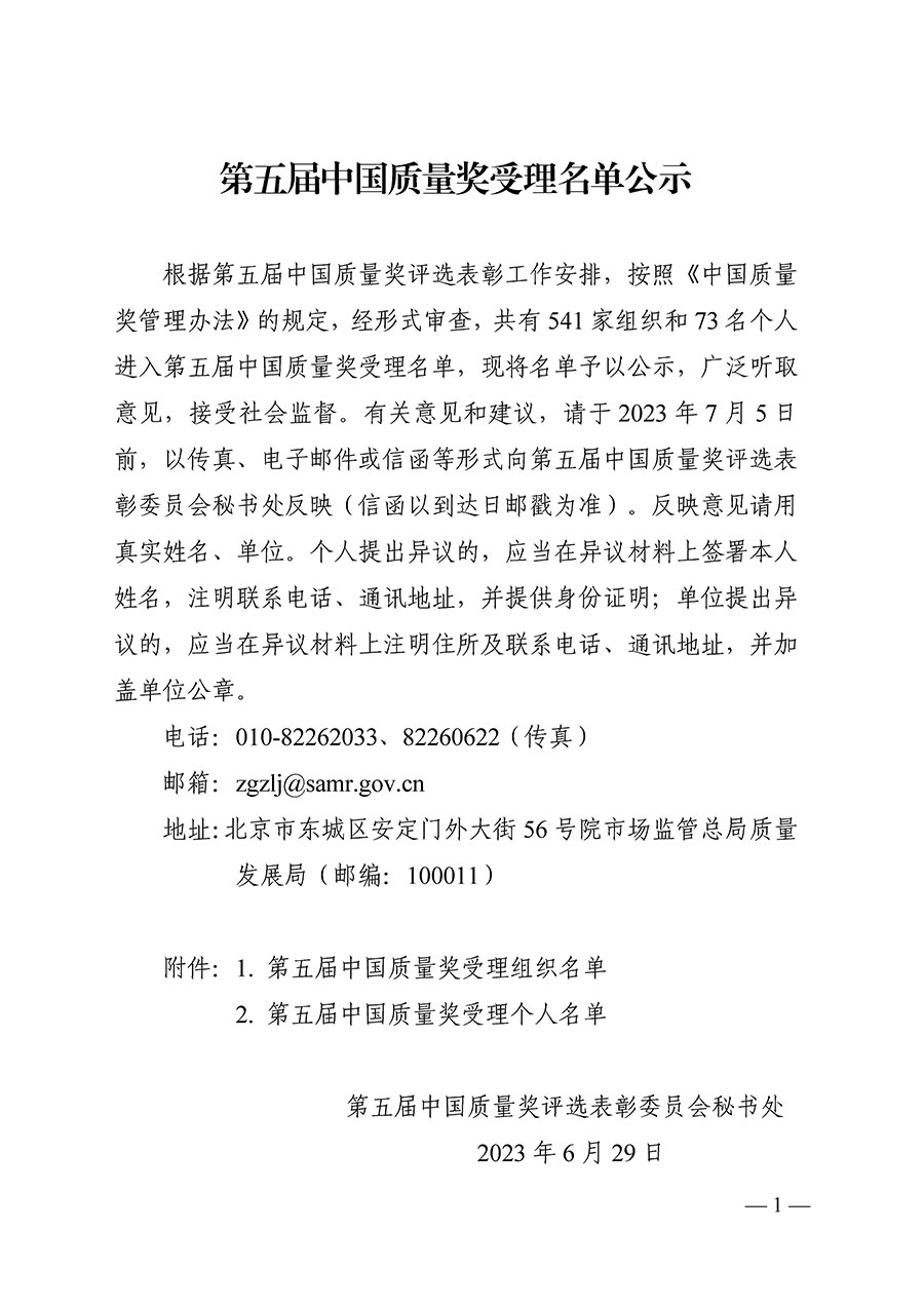 第五屆中國(guó)質(zhì)量獎(jiǎng)受理名單公示(附全名單)