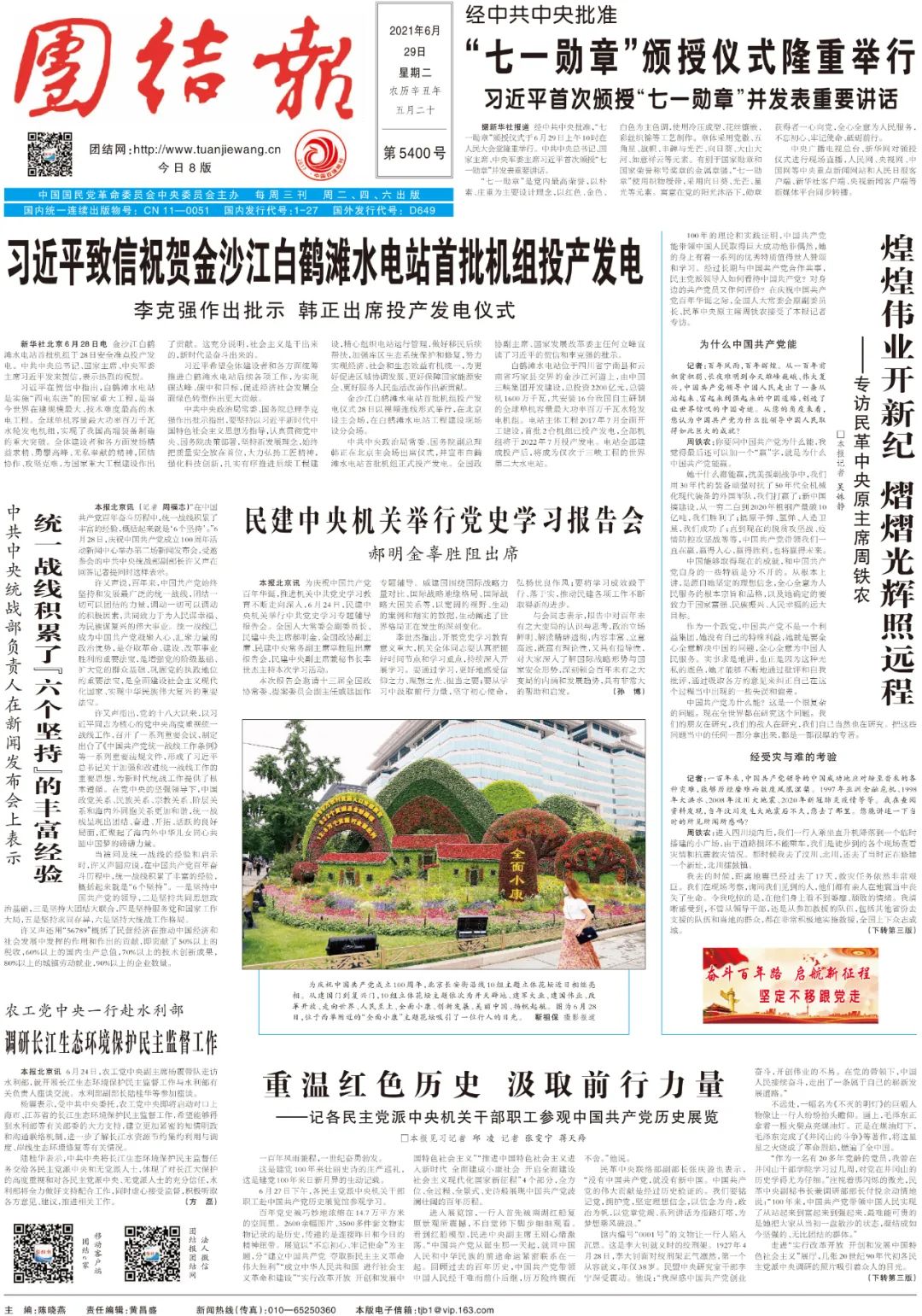 《團(tuán)結(jié)報(bào)》2021年6月29日1版 刊登此文