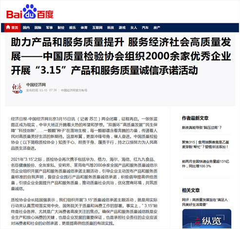 中國經(jīng)濟(jì)網(wǎng):傳遞質(zhì)量信任、引導(dǎo)質(zhì)量消費(fèi),我們堅(jiān)持在行動(dòng)!——中國質(zhì)量檢驗(yàn)協(xié)會(huì)組織2000余家優(yōu)秀企業(yè)在2021年“3.15”開展產(chǎn)品和服務(wù)質(zhì)量誠信承諾主題活動(dòng)