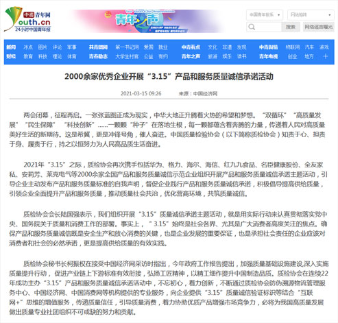 中國青年網(wǎng):2000余家優(yōu)秀企業(yè)開展“3.15”產(chǎn)品和服務(wù)質(zhì)量誠信承諾活動(dòng)
